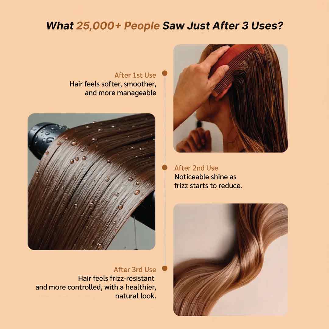 Most users notice smoother, softer, and less frizzy hair in 3–7 applications, depending on hair condition.