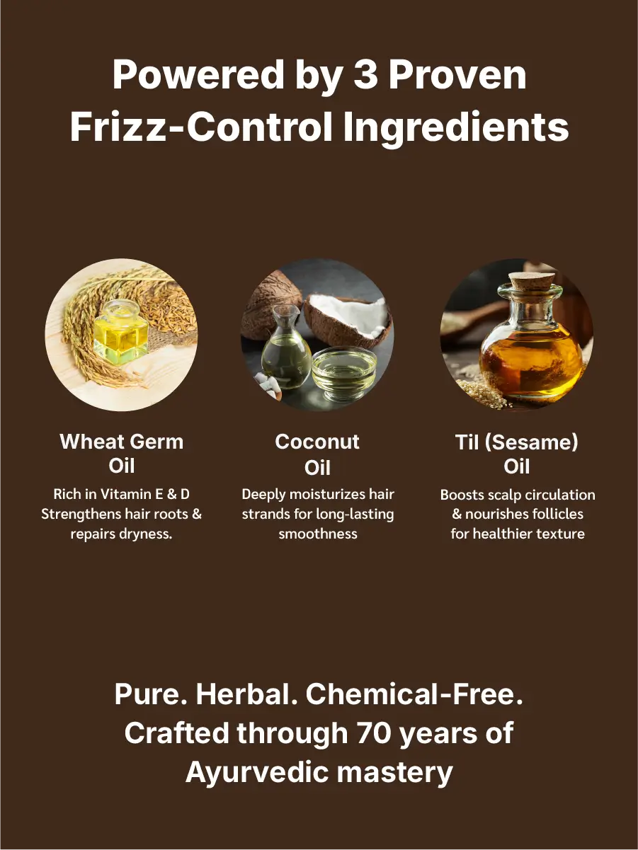 Formulated using Dhariwal Ayurveda’s 7-decade-old heritage, the oil blends traditional wisdom with modern extraction techniques for long-lasting frizz control.