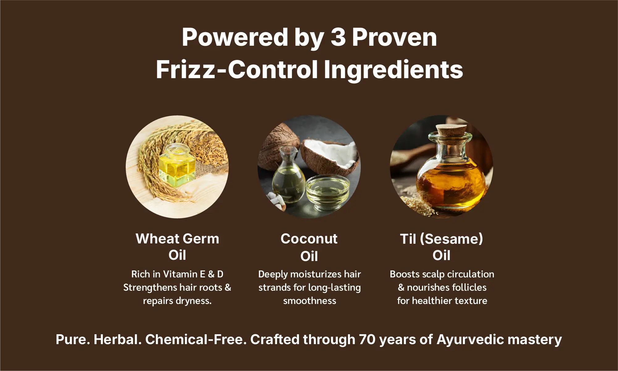 An Ayurvedic powerhouse that boosts scalp circulation, promotes stronger follicles, and helps control frizz naturally. It keeps hair healthy, shiny, and protected from dryness