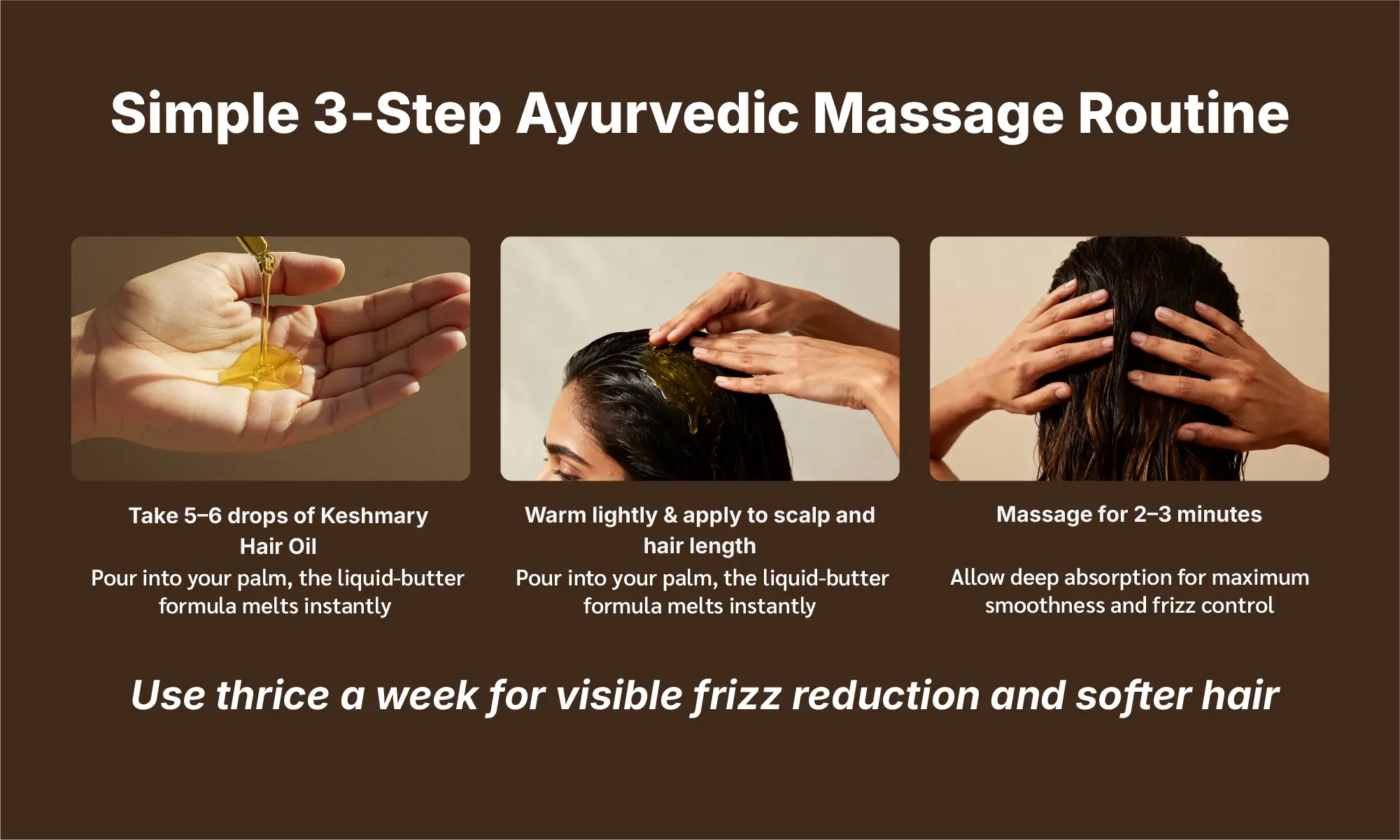 Take 5–6 drops of Keshmary Hair Oil in your palm.